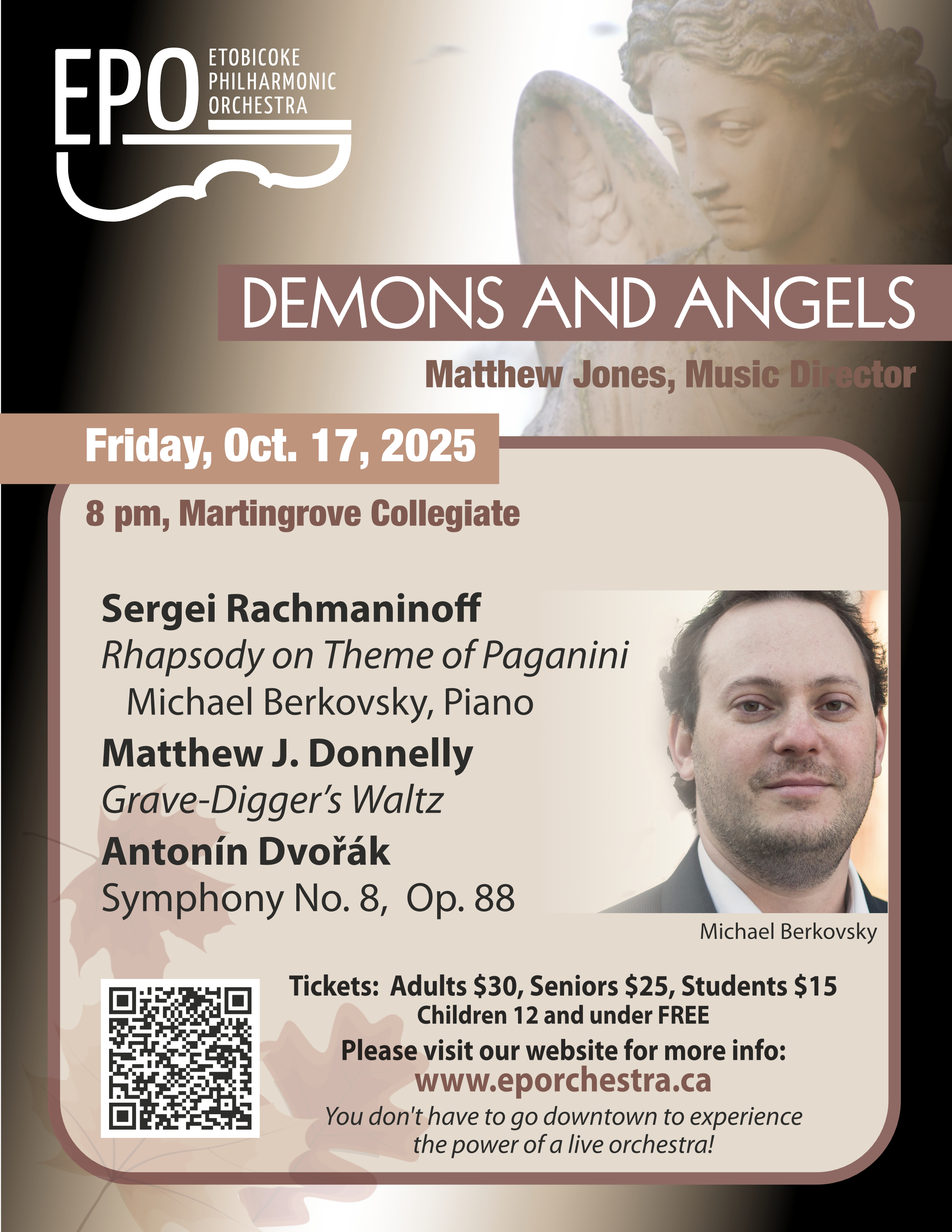 Join the Etobicoke Philharmonic on Friday, October 17, 2025 at Martingrove Collegiate Institute - 50 Winterton Drive, Etobicoke (map) - for Demons and Angels.