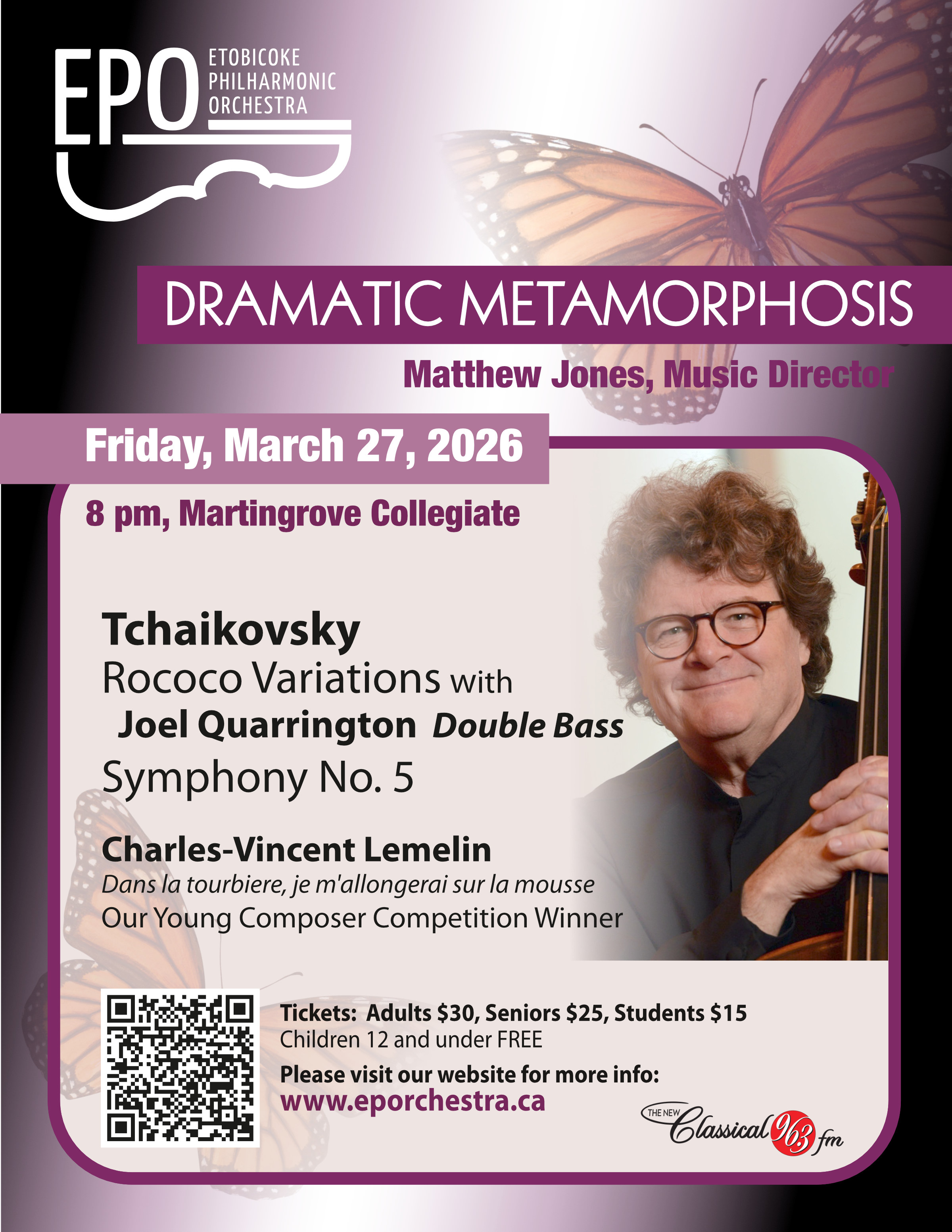 Join the Etobicoke Philharmonic on Friday, March 27, 2026 at Martingrove Collegiate Institute - 50 Winterton Drive, Etobicoke (map) - for Dramatic Metamorphosis.