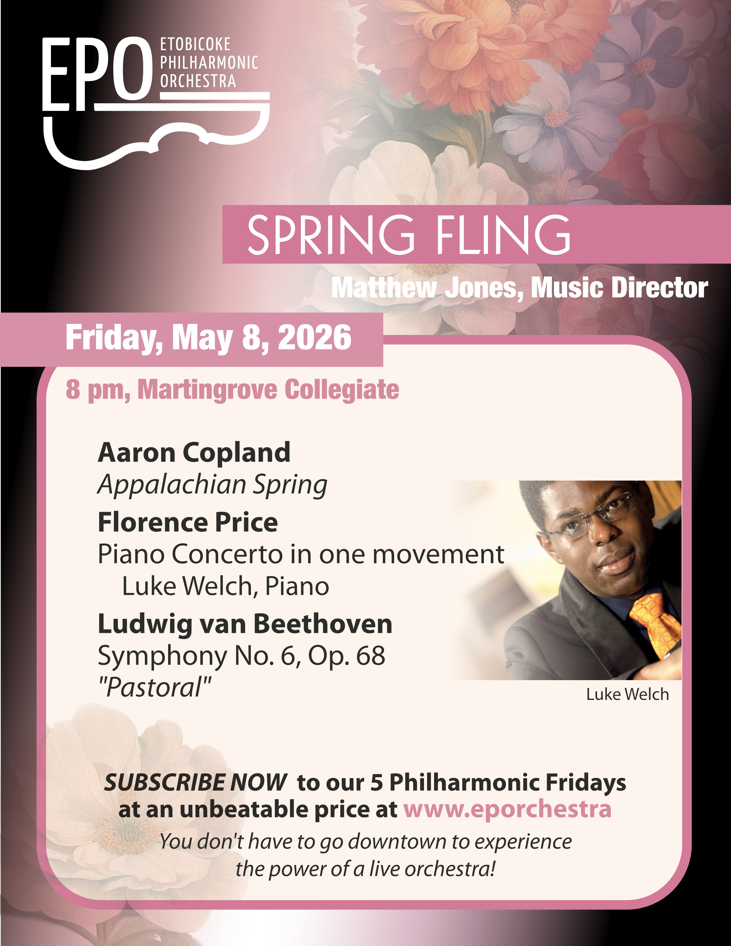 Join the Etobicoke Philharmonic on Friday, May 8, 2026 at Martingrove Collegiate Institute - 50 Winterton Drive, Etobicoke (map) - for Spring Fling.